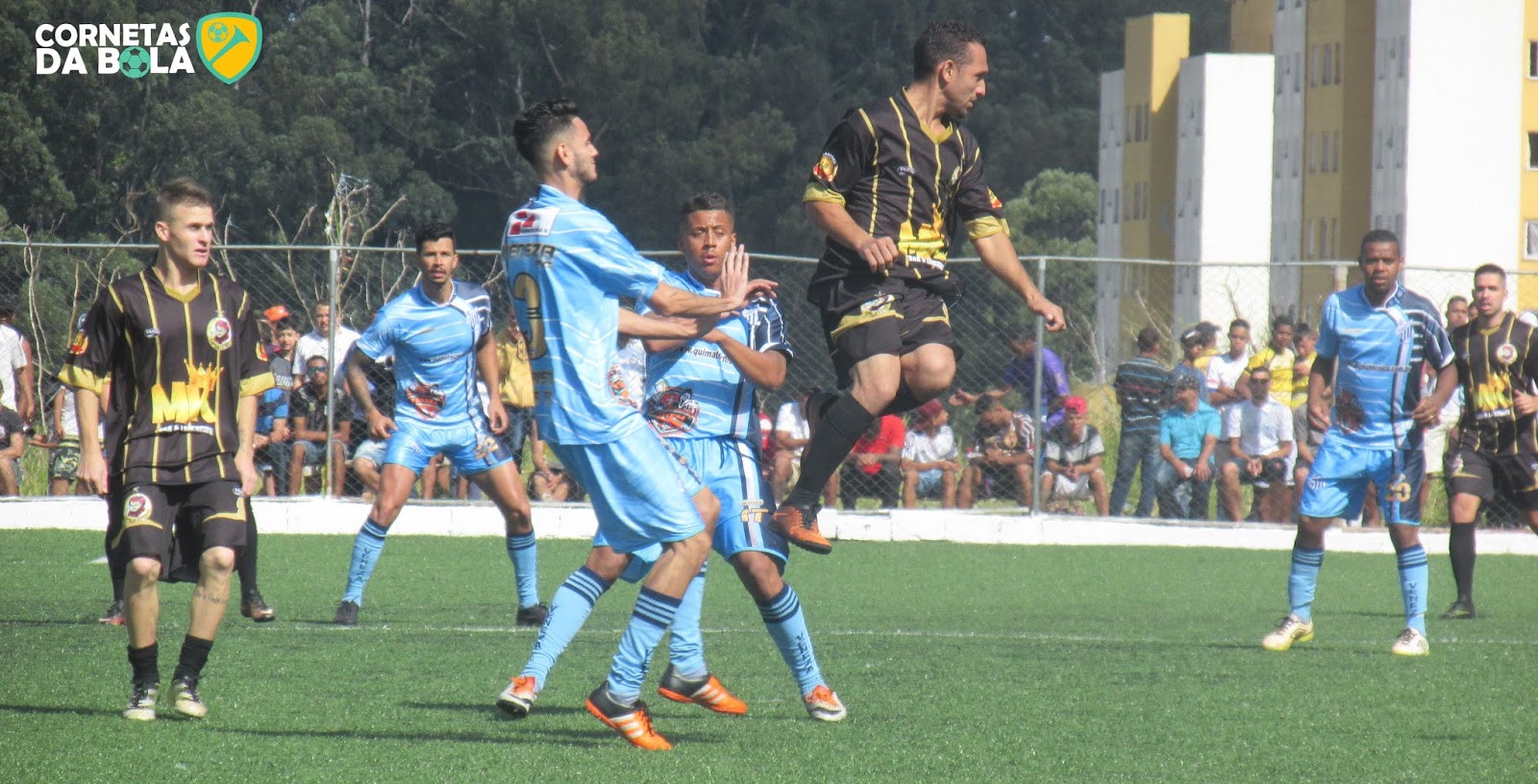veio o gol salvador cobrança de escanteio para o Família Psico bola na área do